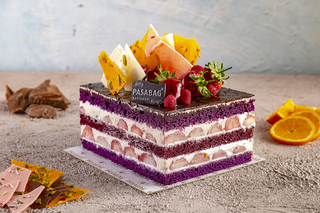 Paşabağ’ın özel reçetesi ile hazırlanan frambuaz, yaban mersini keki arasına çilek ve yoğun yaban mersini kreması ile orman meyveli pastanın en lezzetli hali…